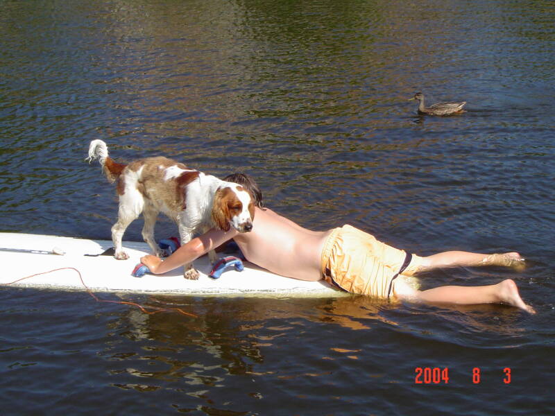 Els deed dan het pootje open bij de zwemsteiger zodat ik zo op kon stappen op het surfboard. Dat was echt leuk, samen spelen.